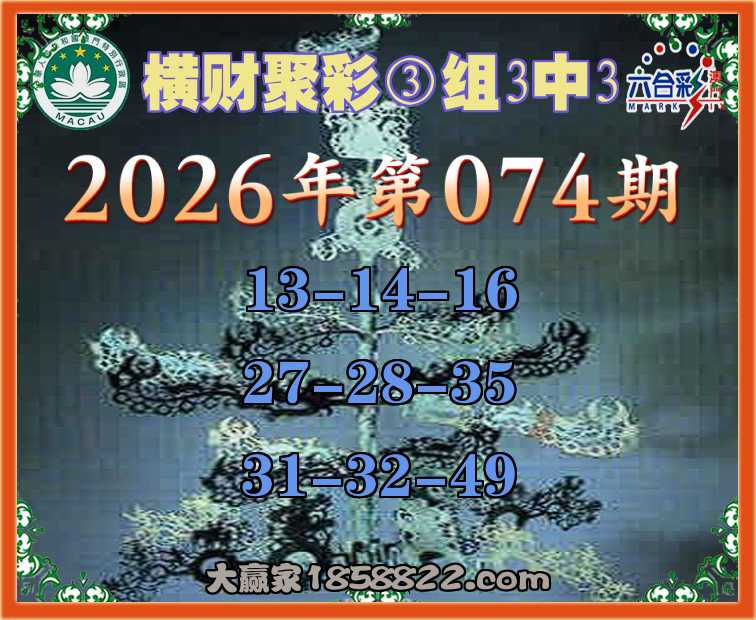 074期:《横财聚彩》 🍀③组3中3🍀